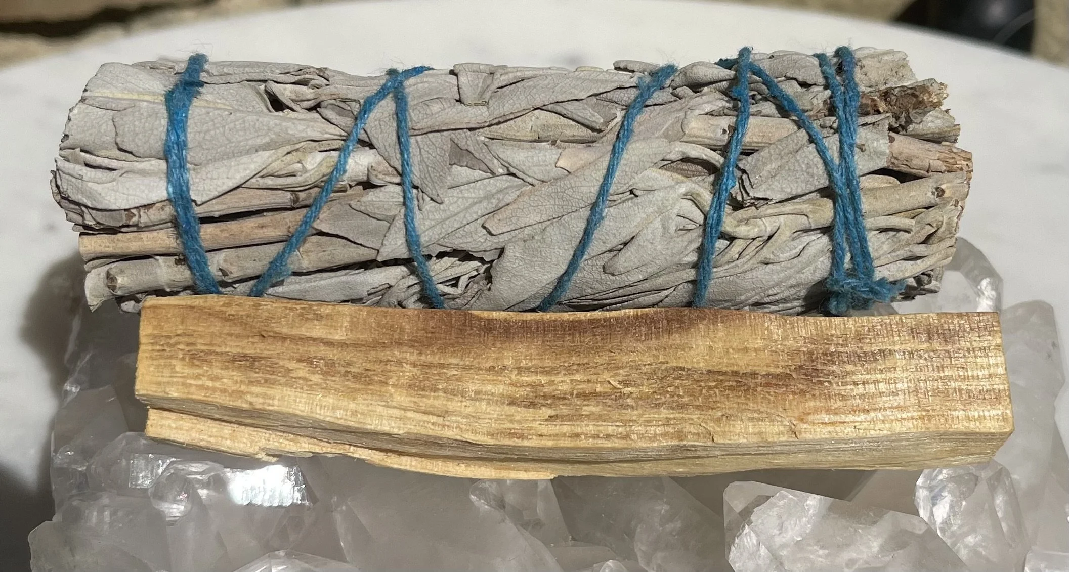 Categories: All Raw Stones Spheres Stones Carvings Ritual Tools Jewelry All / White Sage & Palo Santo Bundle Sale Price: $6.88 Original Price: $9.88 Sale Palo Santo $4.88 White Sage Smudge Stick $4.88